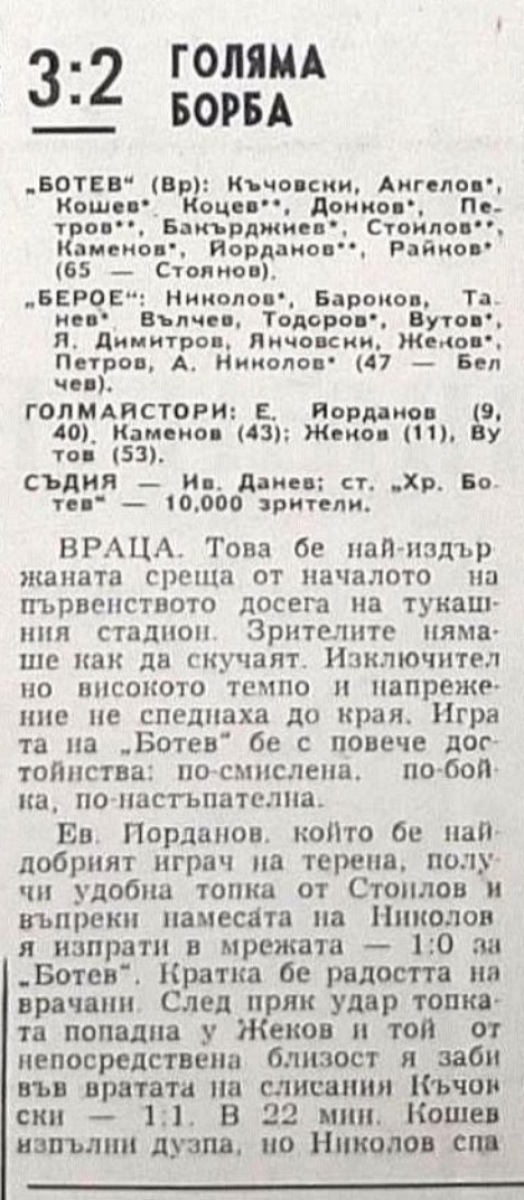 «Ботев» Враца - «Берое» Стара-Загора - 3:2