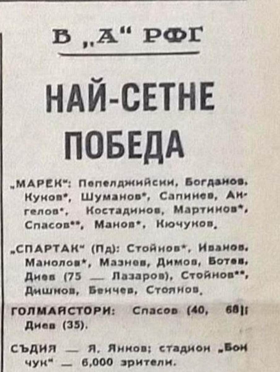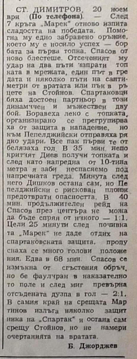 «Марек» Станке-Димитров - «Спартак» Пловдив - 2:1