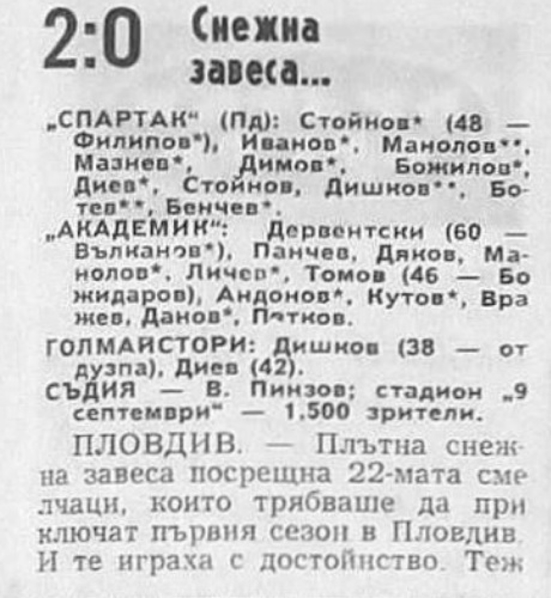 «Спартак» Пловдив - «Академик» София - 2:0