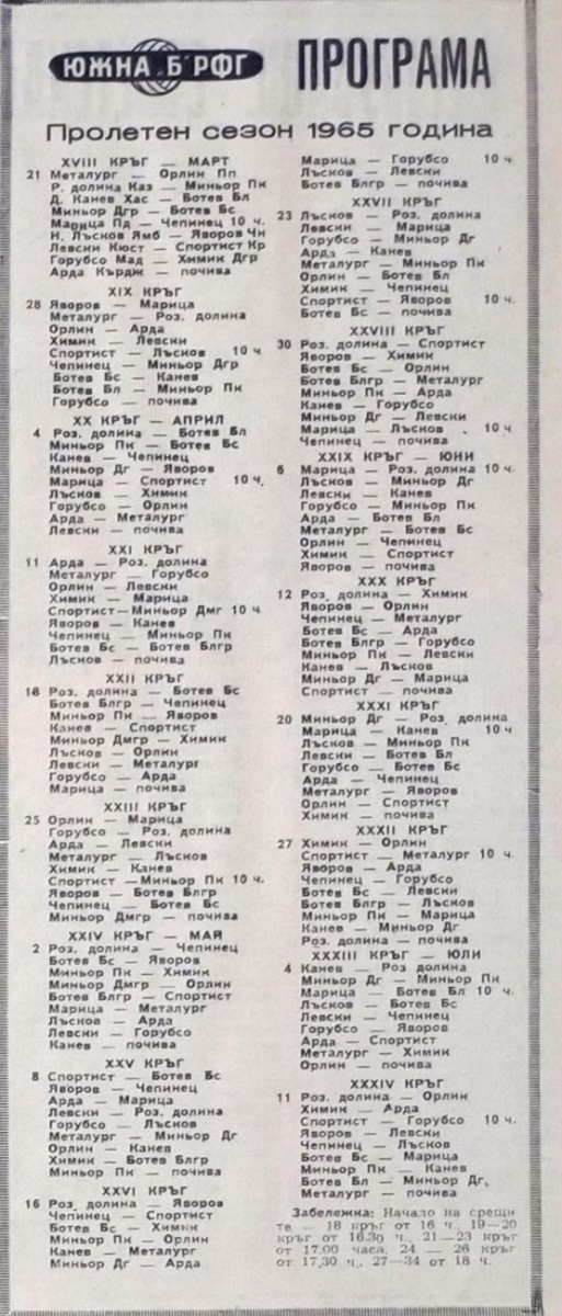 Чемпионат Болгарии 1964/65. Группа А
