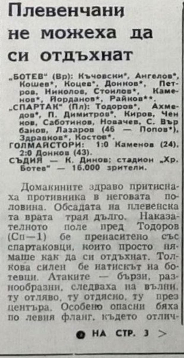 «Ботев» Враца - «Спартак» Плевен - 2:0