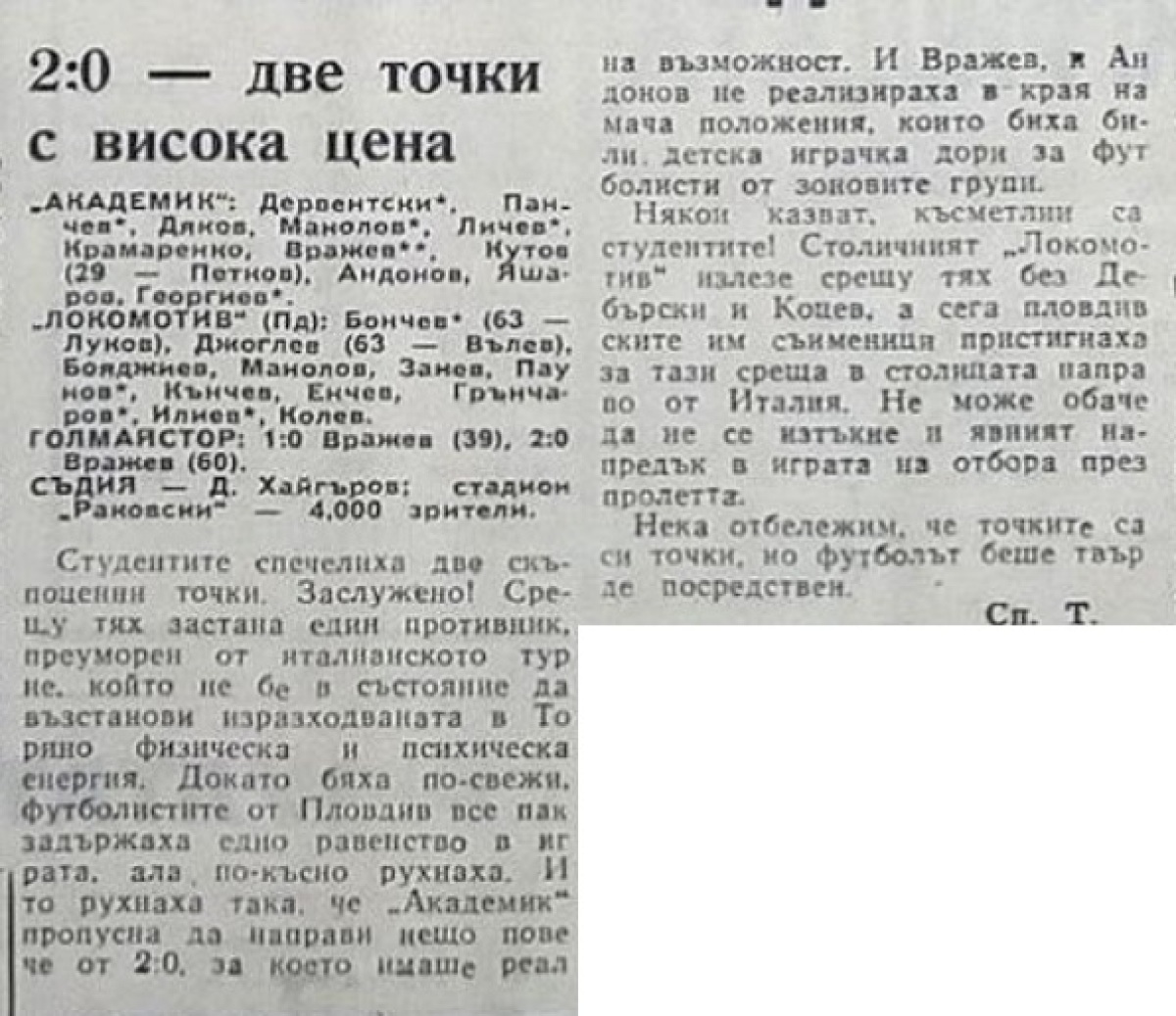 «Академик» София - «Локомотив» Пловдив - 2:0