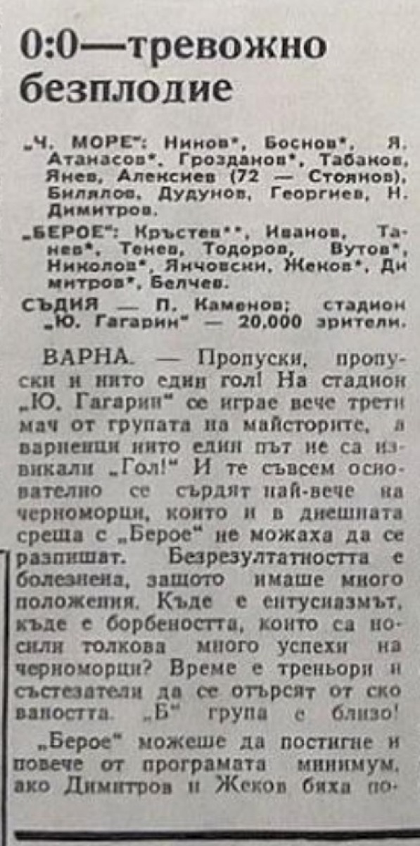 «Черно море» Варна - «Берое» Стара-Загора - 0:0