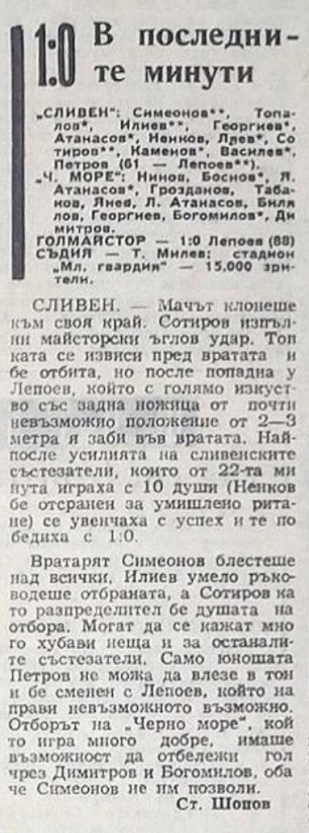 «Сливен» Сливен - «Черно море» Варна - 1:0