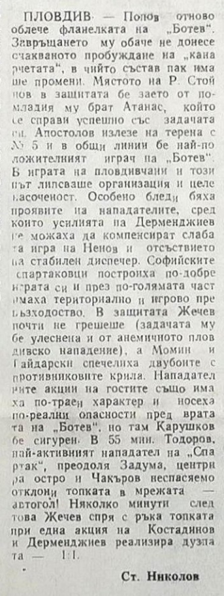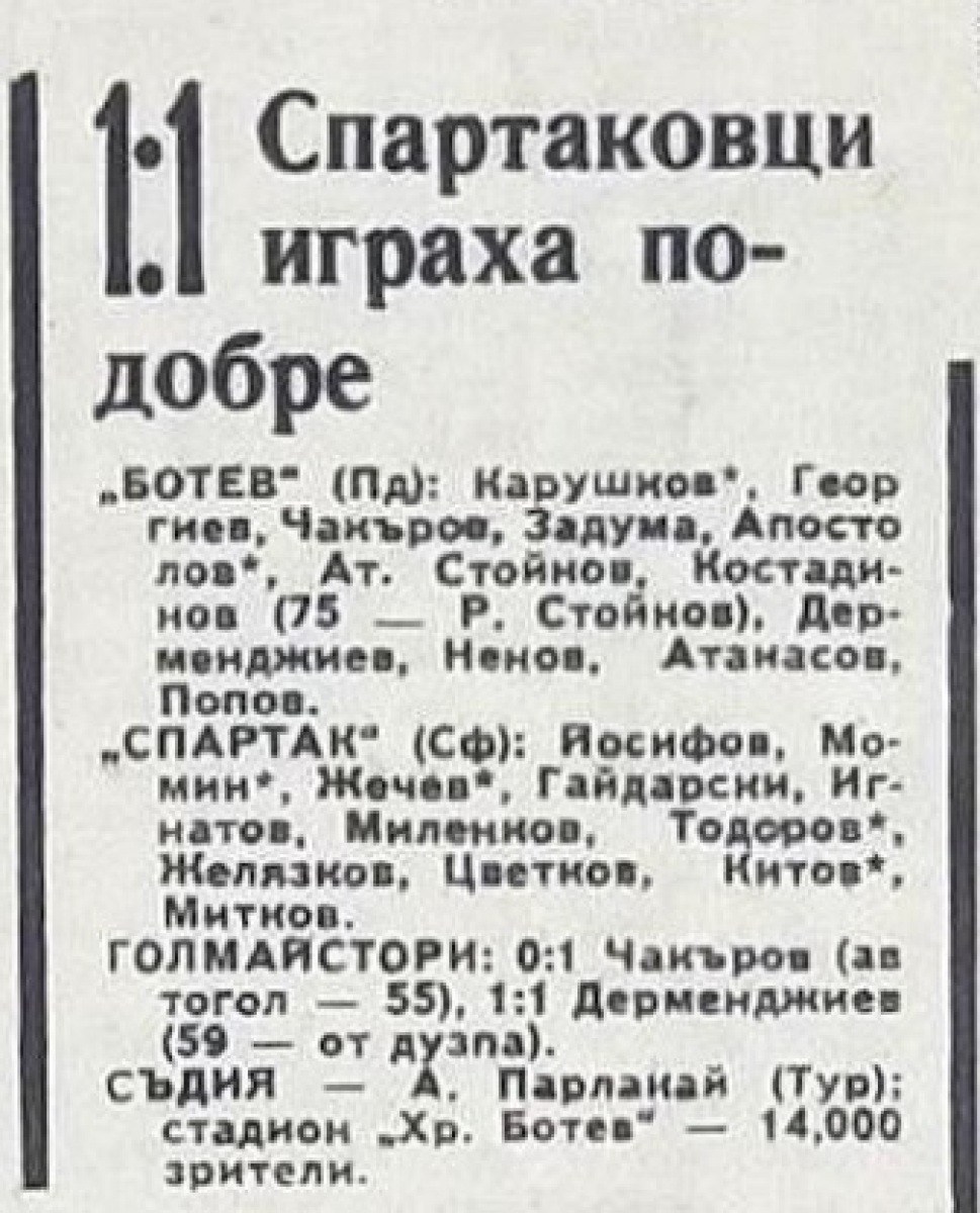 «КЦМ-Ботев» Пловдив - «Спартак» София - 1:1