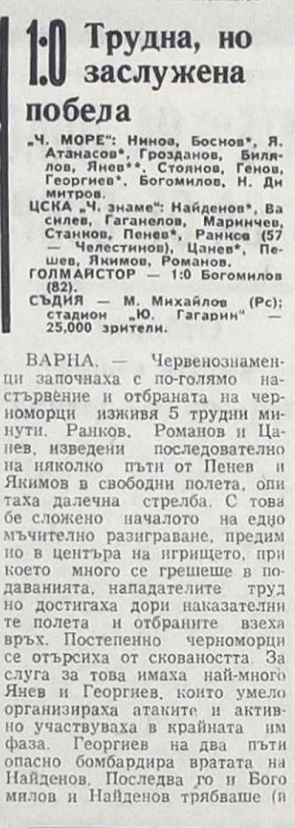 «Черно море» Варна - «ЦСКА Червено Знаме» София - 1:0