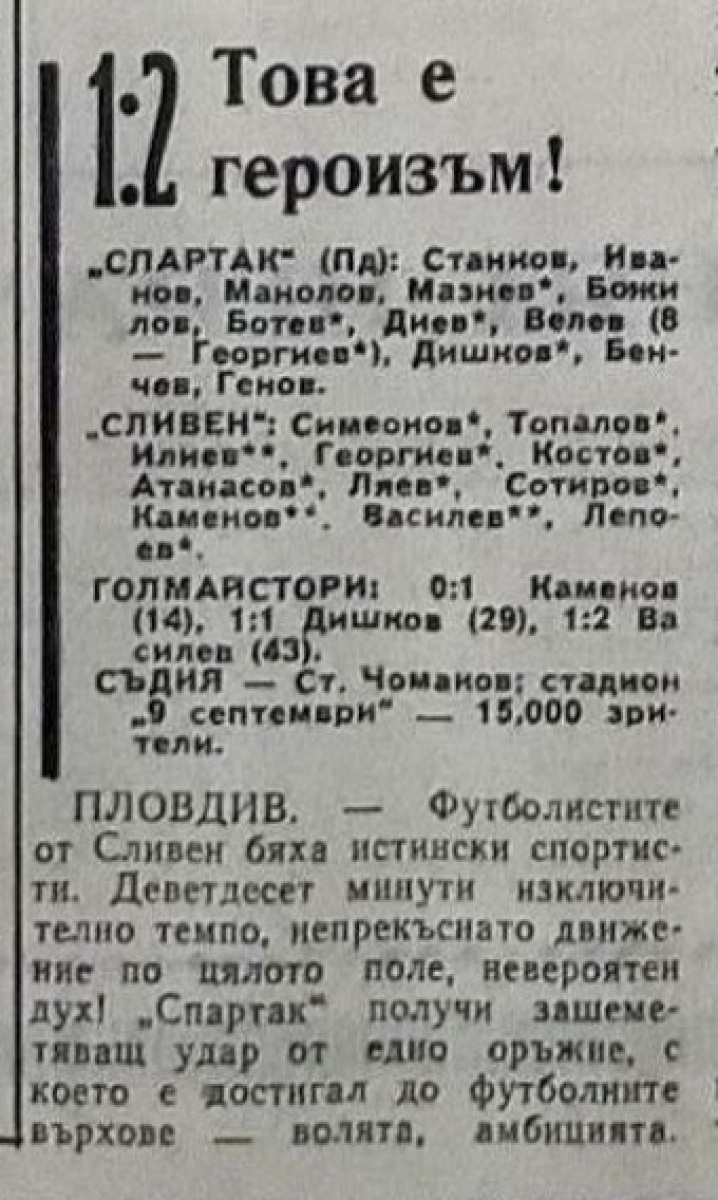 «Спартак» Пловдив - «Сливен» Сливен - 1:2