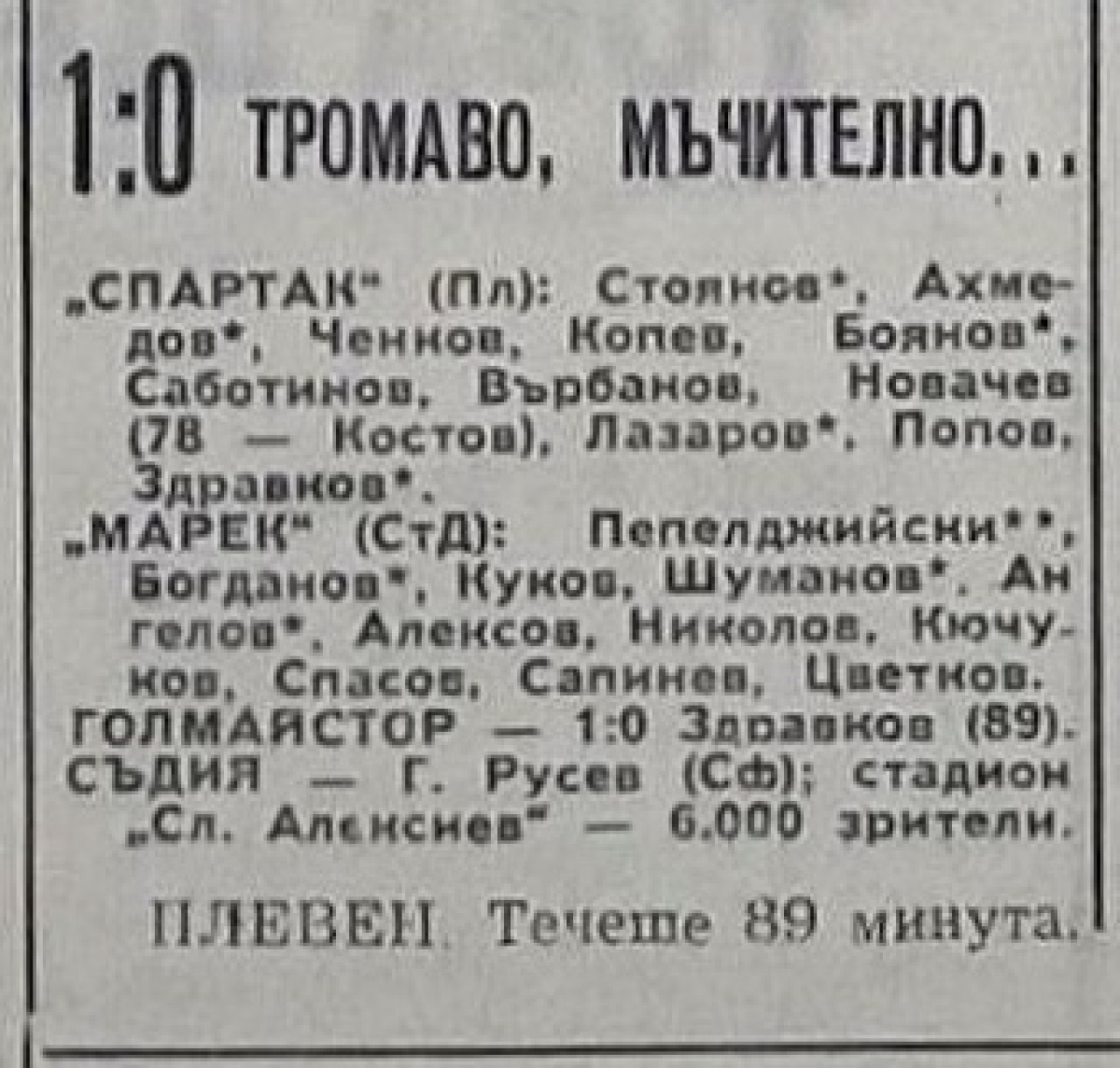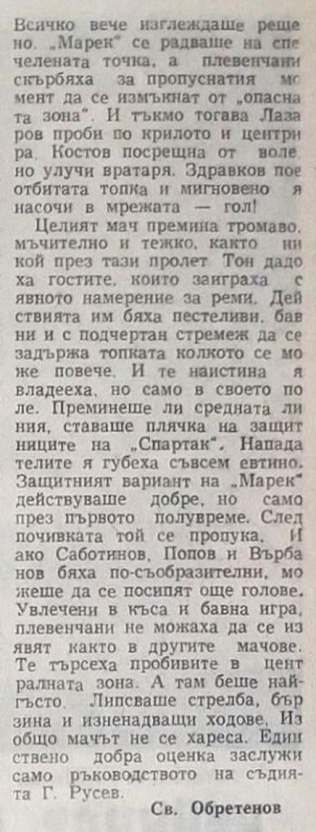 «Спартак» Плевен - «Марек» Станке-Димитров - 1:0