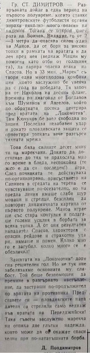 «Марек» Станке-Димитров - «Локомотив» Пловдив - 1:0