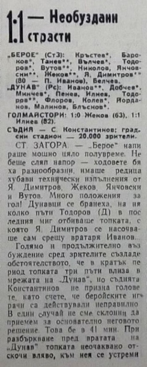 «Берое» Стара-Загора - «Дунав» Русе - 1:1