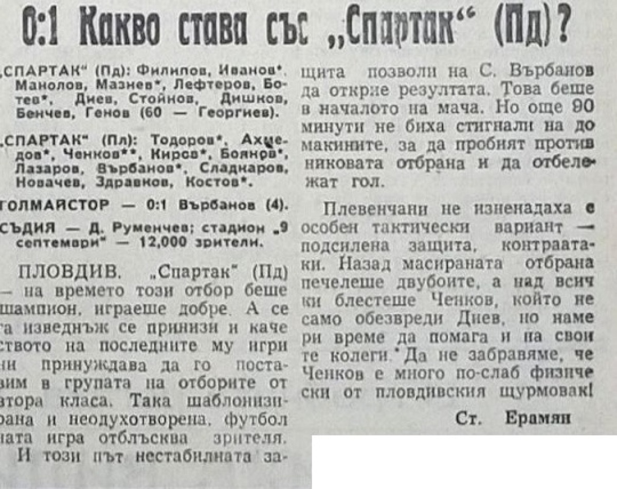 «Спартак» Пловдив - «Спартак» Плевен - 0:1