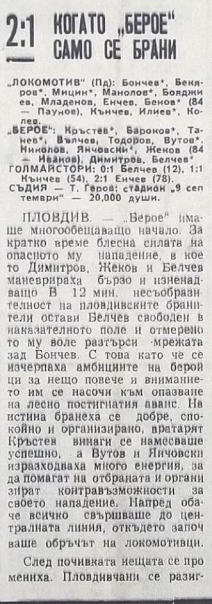 «Локомотив» Пловдив - «Берое» Стара-Загора - 2:1