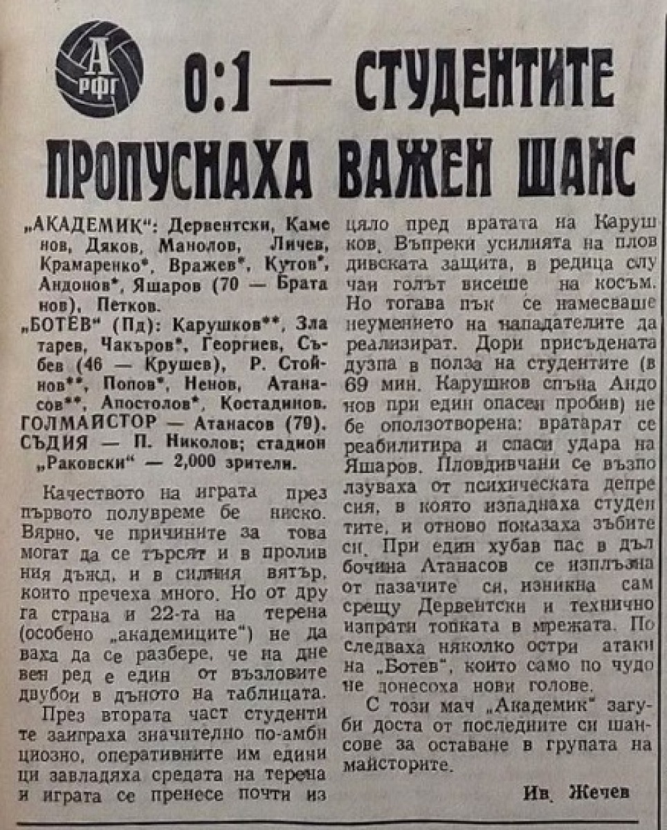 «Академик» София - «КЦМ-Ботев» Пловдив - 0:1
