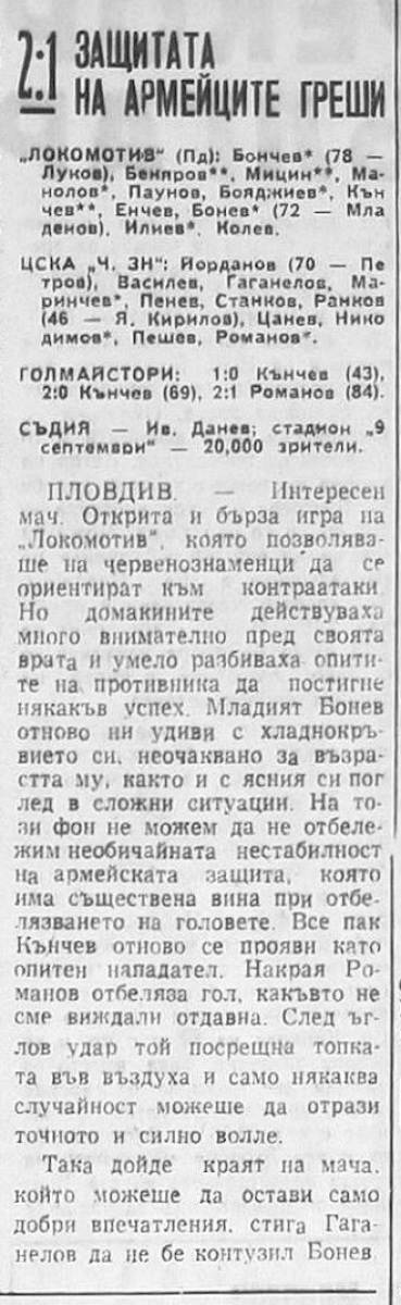 «Локомотив» Пловдив - «ЦСКА Червено Знаме» София - 2:1