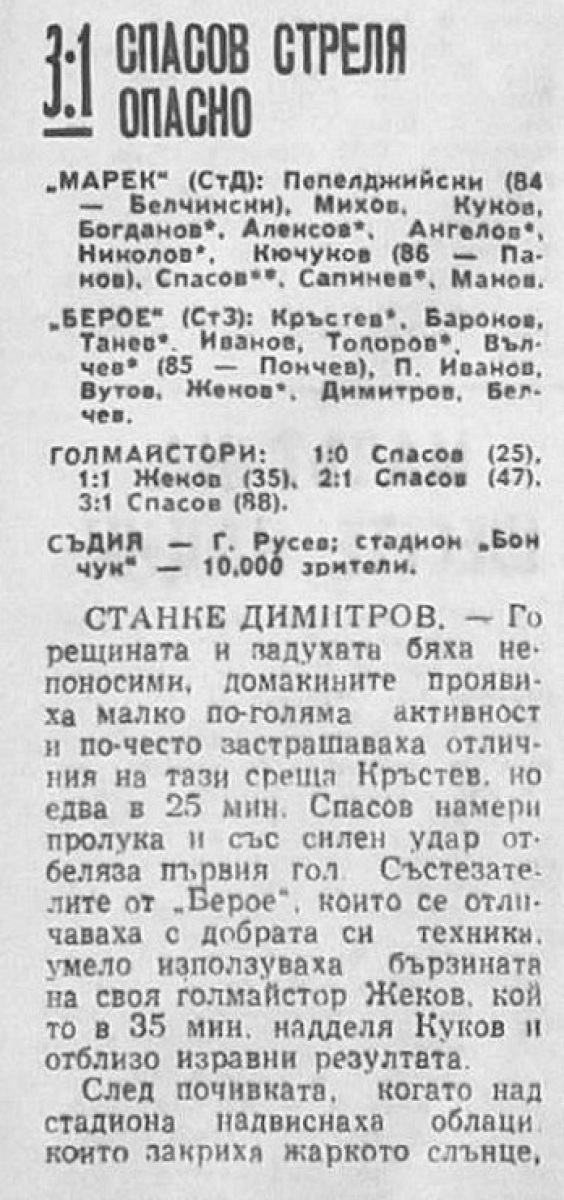«Марек» Станке-Димитров - «Берое» Стара-Загора - 3:1