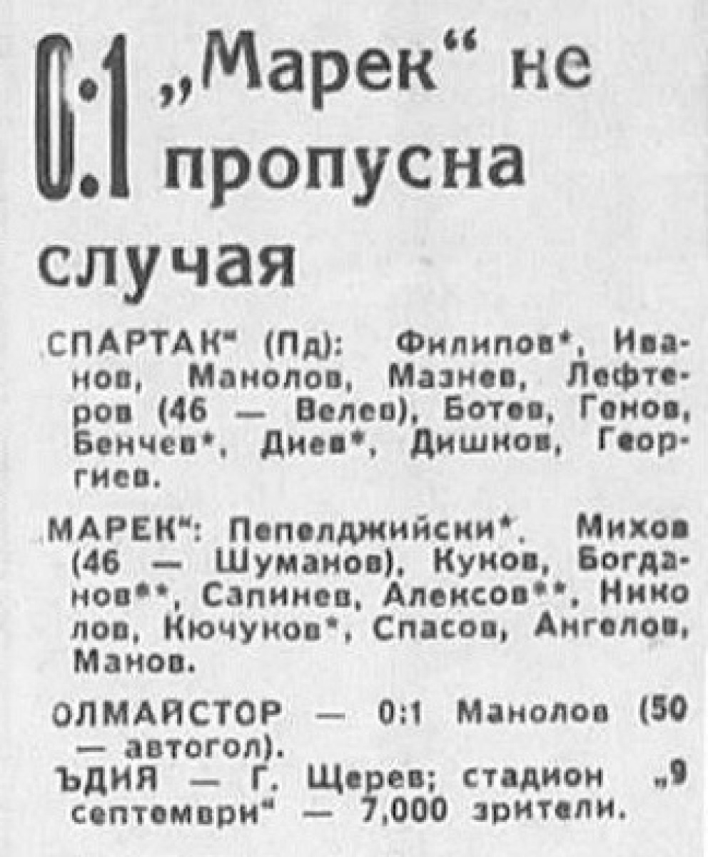 «Спартак» Пловдив - «Марек» Станке-Димитров - 0:1