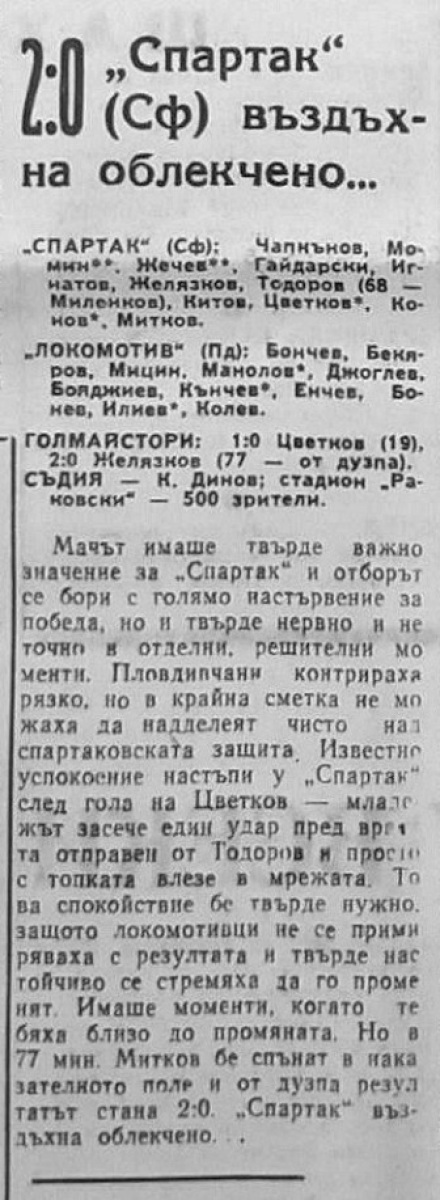 «Спартак» София - «Локомотив» Пловдив - 2:0