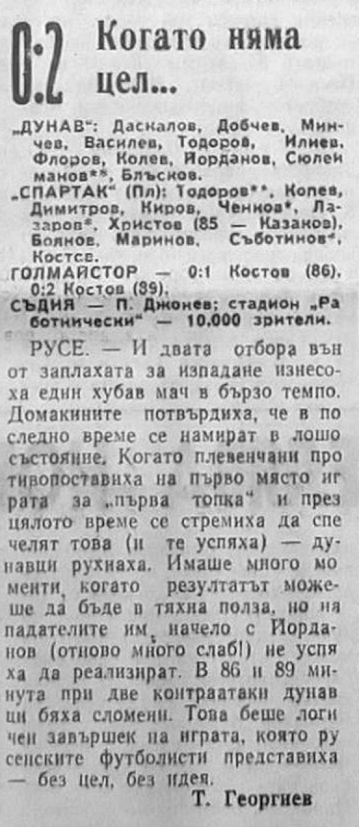 «Дунав» Русе - «Спартак» Плевен - 0:2