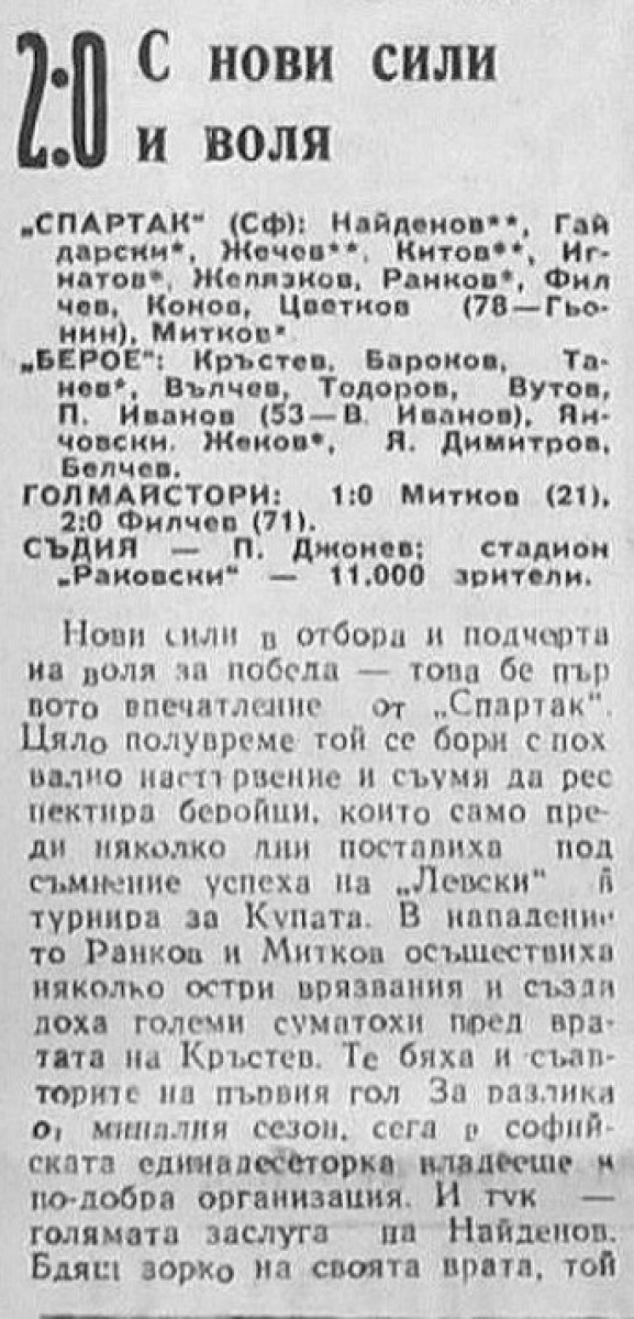 Михаил Гьонин (Спартак София) дебютировал в А РФГ (из «Септемврийска слава" Михайловград). Георги Найденов и Иван Ранков дебютировали в состве Спартака София (оба перешли из ЦСКА "Червоно знаме" София).