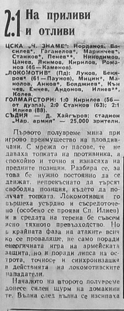 «ЦСКА Червено Знаме» София - «Локомотив» Пловдив - 2:1