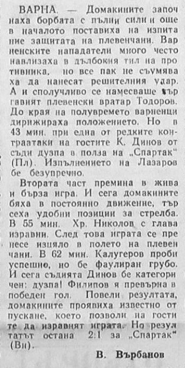 «Спартак» Варна - «Спартак» Плевен - 2:1