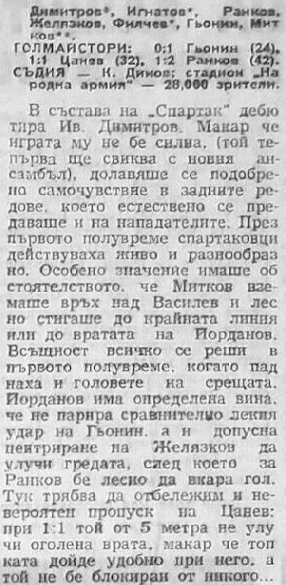 Кирил Райков дебютировал в ЦСКА «Червено знаме» София (перешёл из «Ботев» Враца). Иван Димитров дебютировал в «Спартак» София (из «Локомотив» София).