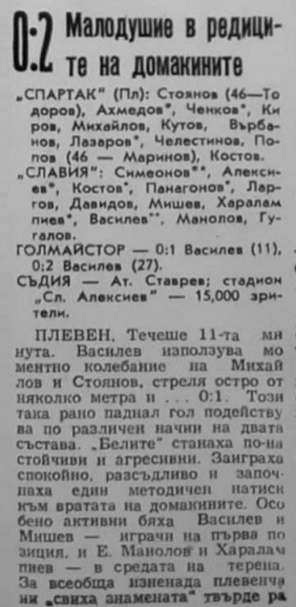 «Спартак» Плевен - «Славия» София - 0:2