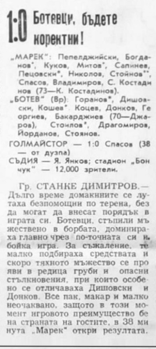 «Марек» Станке-Димитров - «Ботев» Враца - 1:0