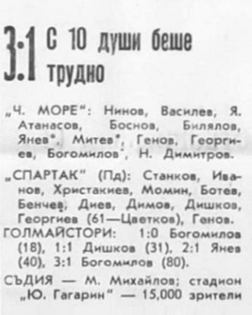 «Черно море» Варна - «Спартак» Пловдив - 3:1