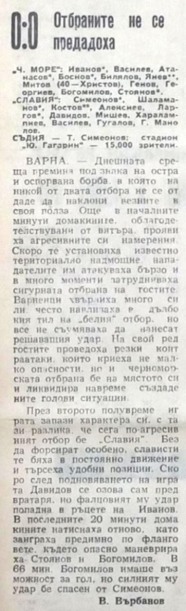«Черно море» Варна - «Славия» София - 0:0