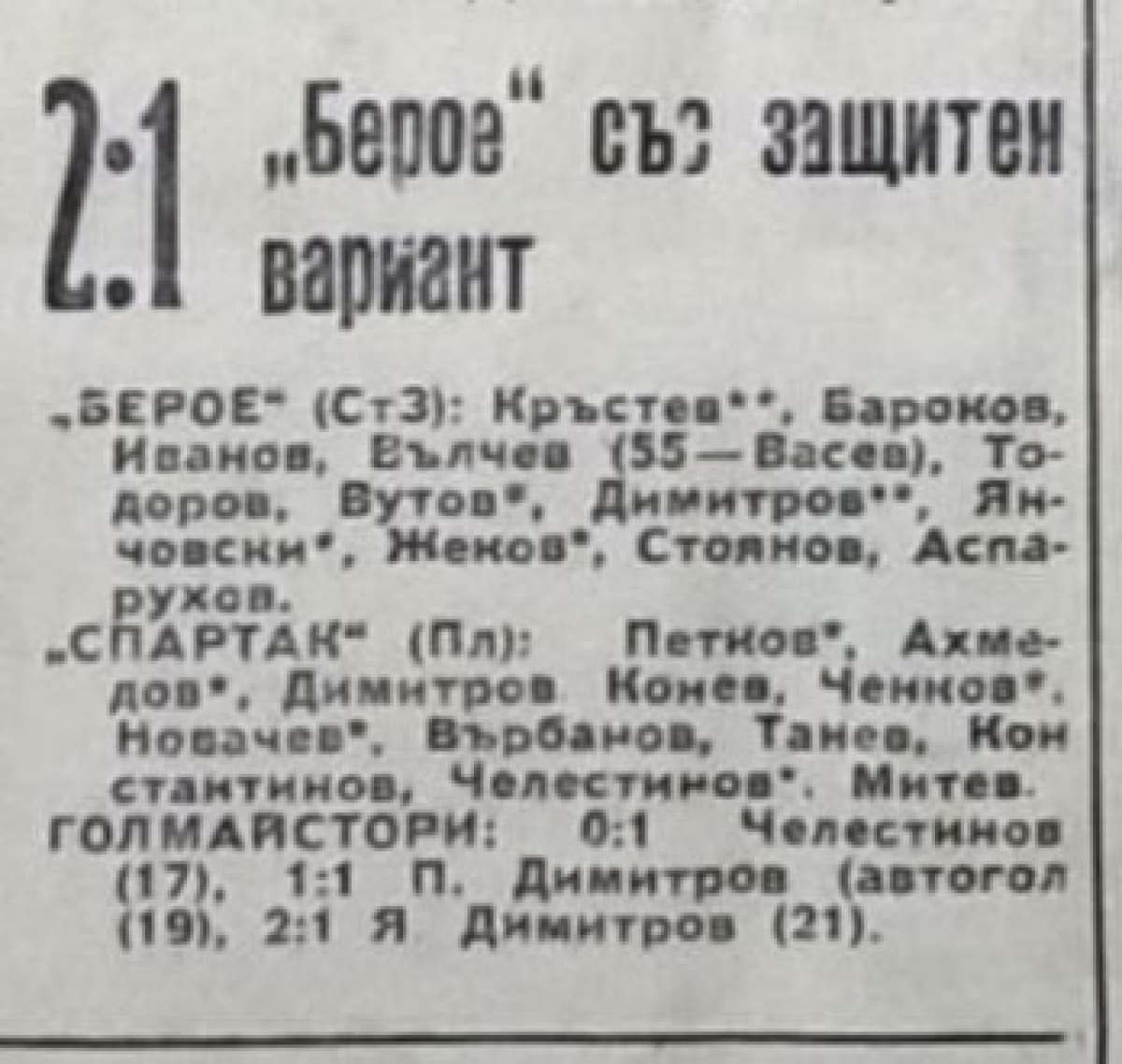 «Берое» Стара-Загора - «Спартак» Плевен - 2:1