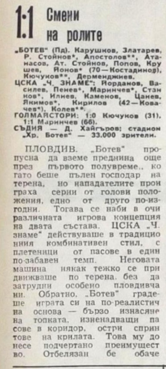 «КЦМ-Ботев» Пловдив - «ЦСКА Червено Знаме» София - 1:1