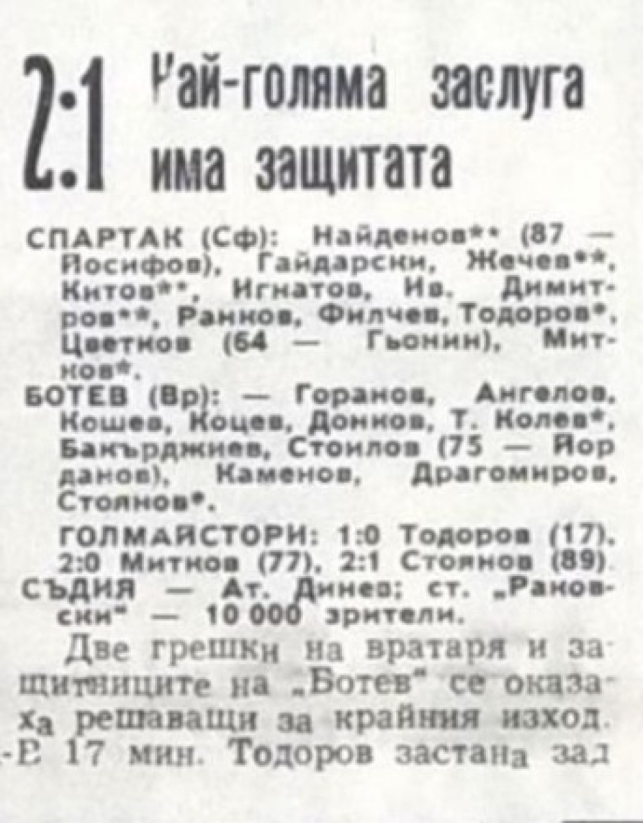 «Спартак» София - «Ботев» Враца - 2:1