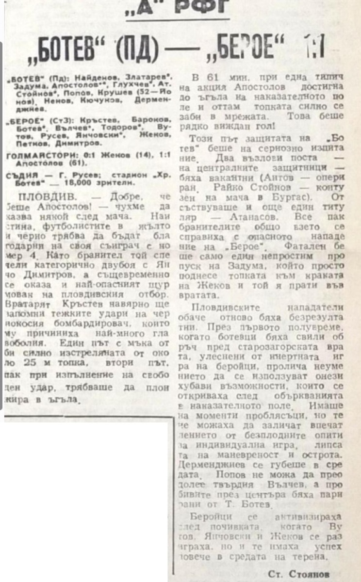 «КЦМ-Ботев» Пловдив - «Берое» Стара-Загора - 1:1