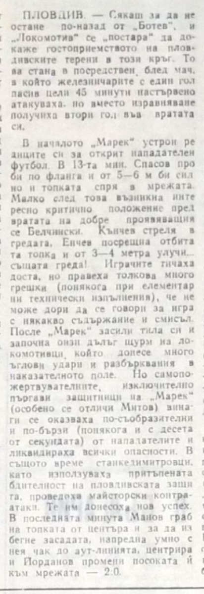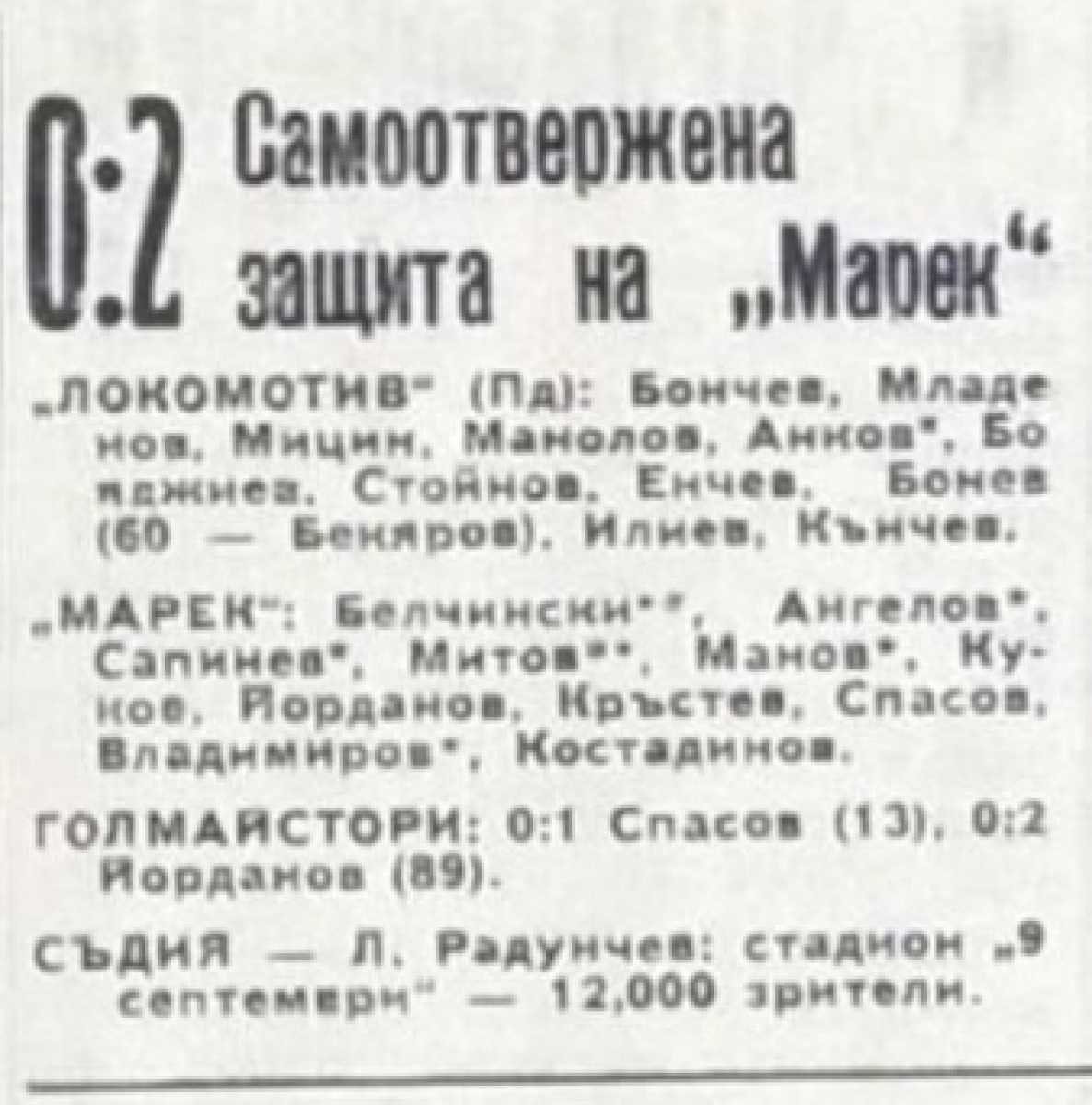 «Локомотив» Пловдив - «Марек» Станке-Димитров - 0:2