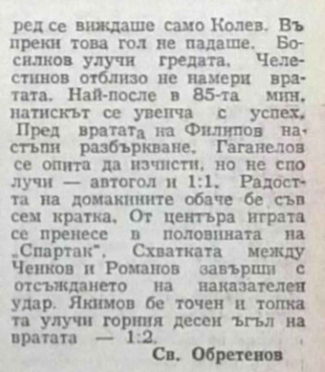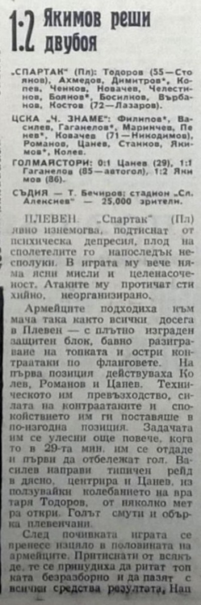 «Спартак» Плевен - «ЦСКА Червено Знаме» София - 1:2