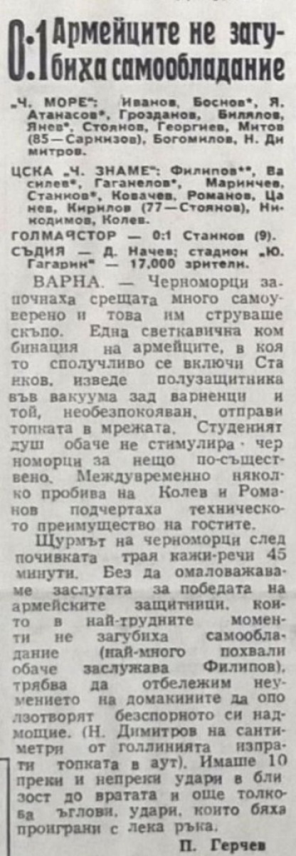 «Черно море» Варна - «ЦСКА Червено Знаме» София - 0:1