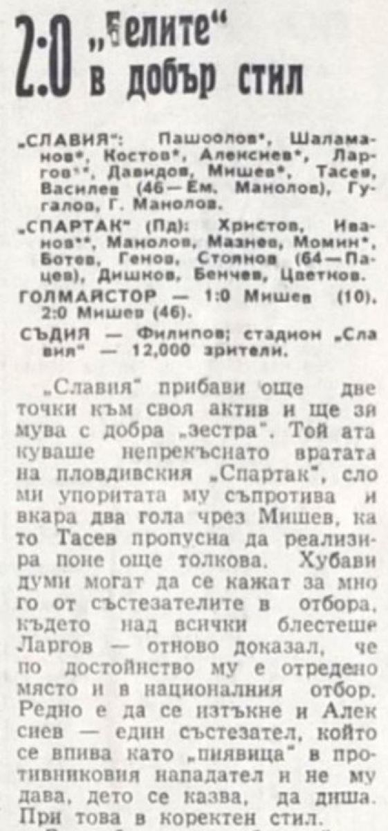 «Славия» София - «Спартак» Пловдив - 2:0