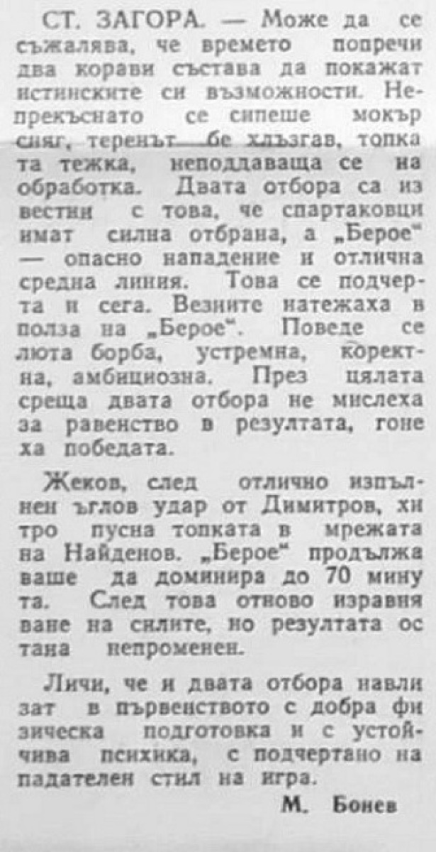 «Берое» Стара-Загора - «Спартак» София - 1:0