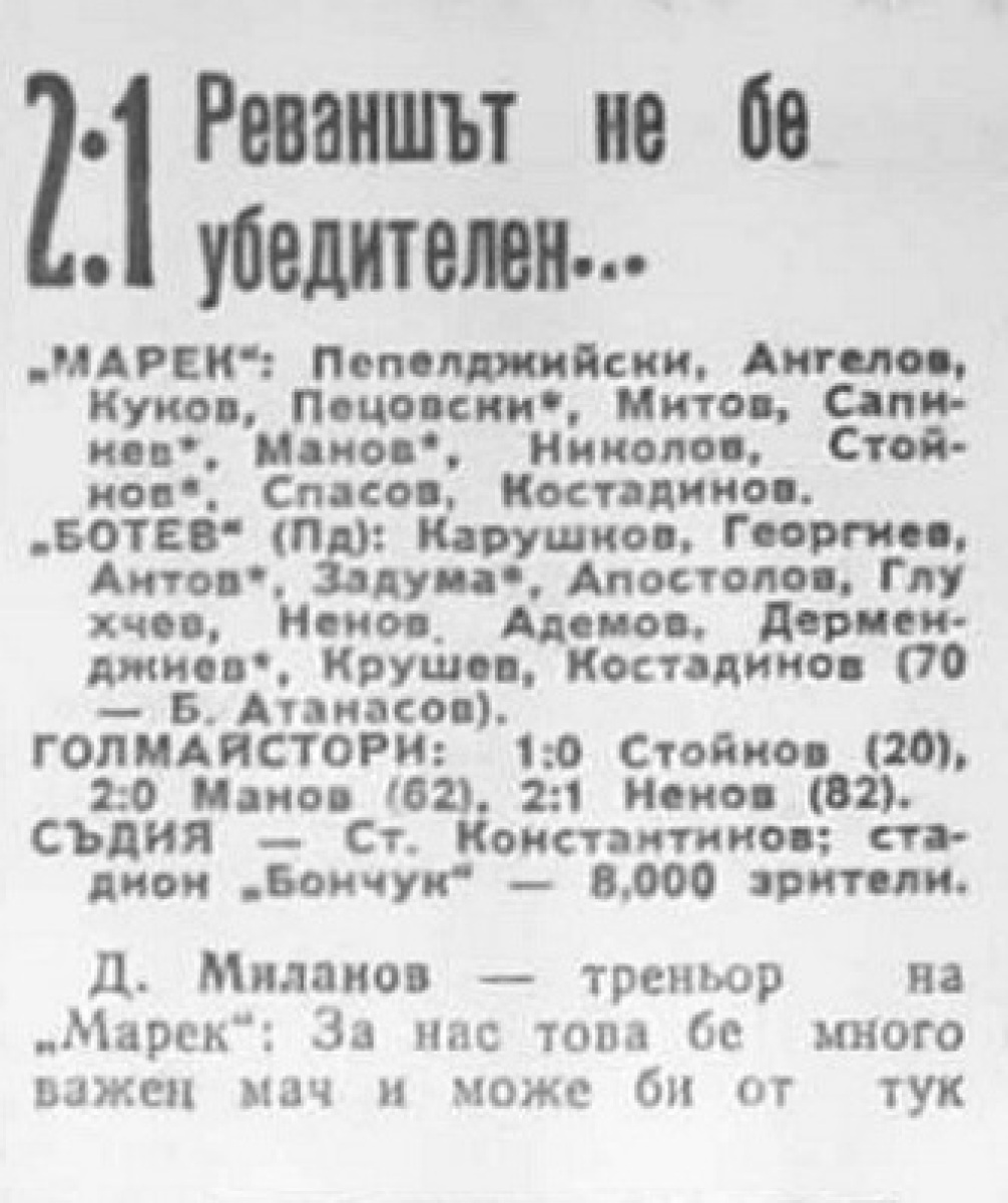 «Марек» Станке-Димитров - «КЦМ-Ботев» Пловдив - 2:1