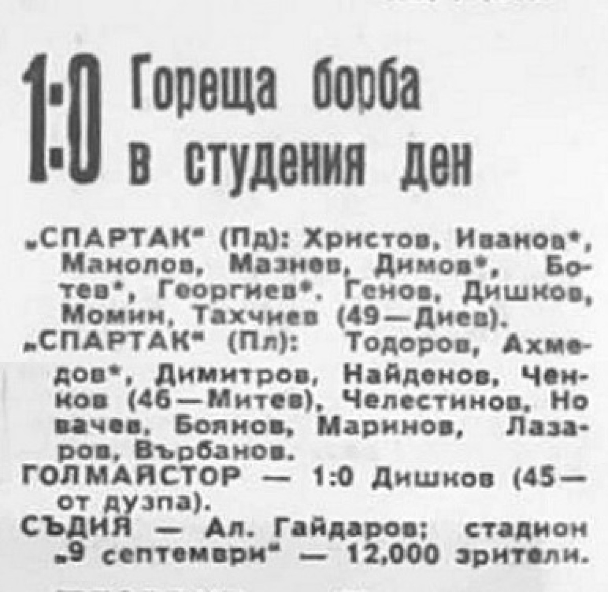 «Спартак» Пловдив - «Спартак» Плевен - 1:0