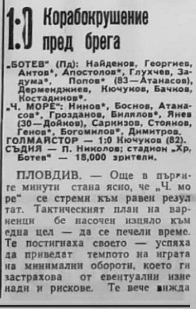 «КЦМ-Ботев» Пловдив - «Черно море» Варна - 1:0