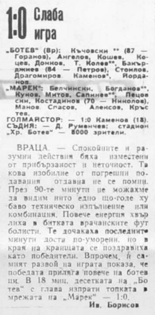 «Ботев» Враца - «Марек» Станке-Димитров - 1:0