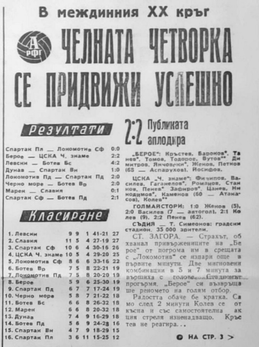 «Берое» Стара-Загора - «ЦСКА Червено Знаме» София - 2:2