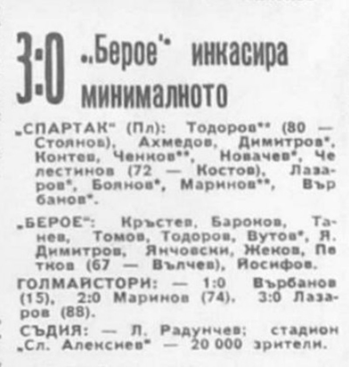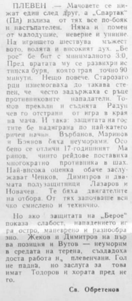 «Спартак» Плевен - «Берое» Стара-Загора - 3:0