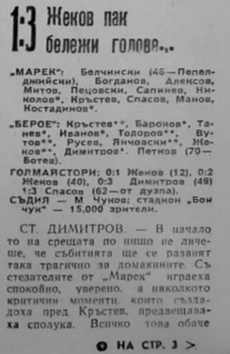 «Марек» Станке-Димитров - «Берое» Стара-Загора - 1:3