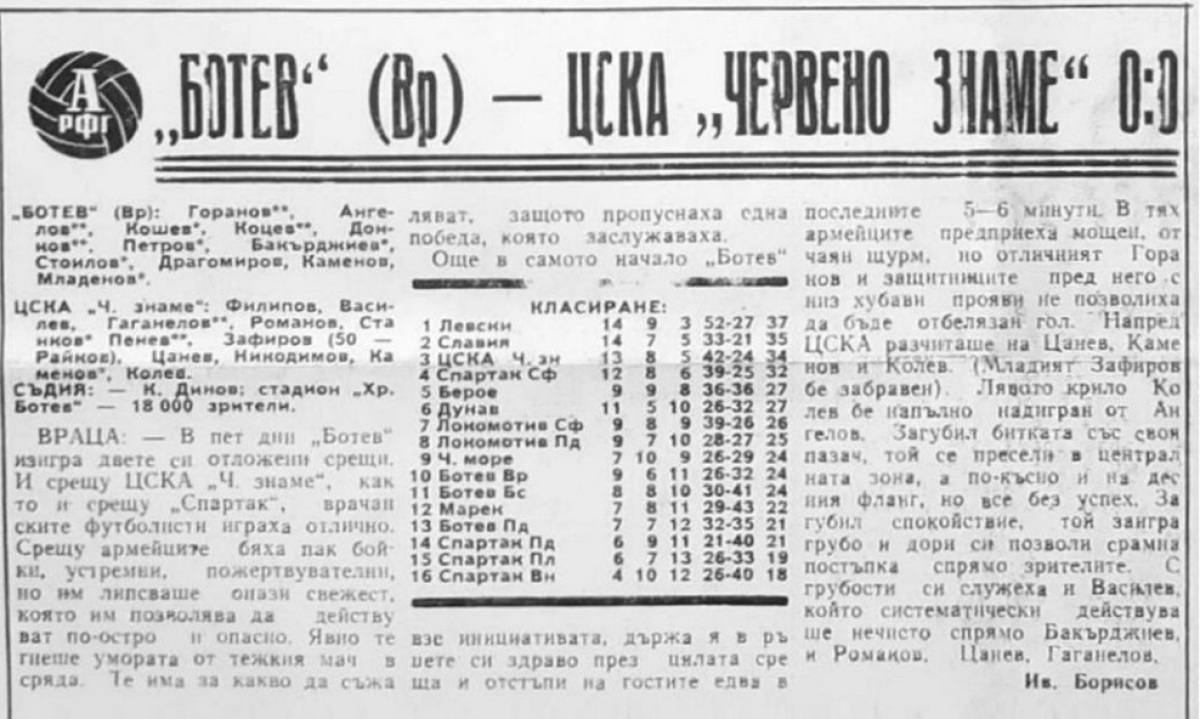 «Ботев» Враца - «ЦСКА Червено Знаме» София - 0:0
