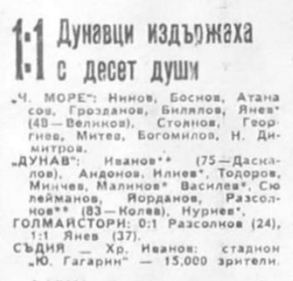 «Черно море» Варна - «Дунав» Русе - 1:1