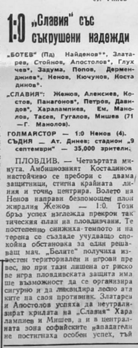 «КЦМ-Ботев» Пловдив - «Славия» София - 1:0
