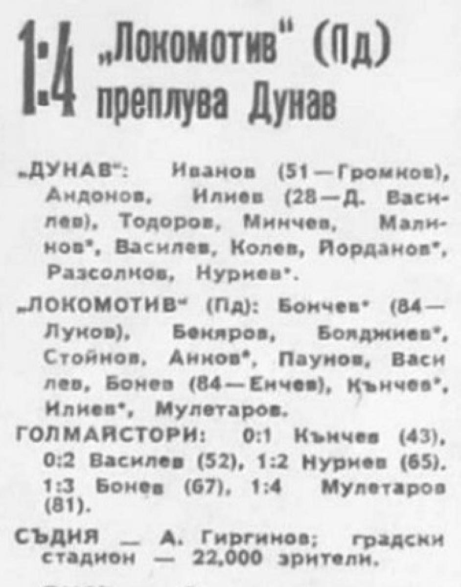 «Дунав» Русе - «Локомотив» Пловдив - 1:4